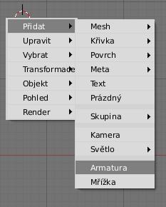 Kosti vytvoříte Shift+A > Přidat > Armatura